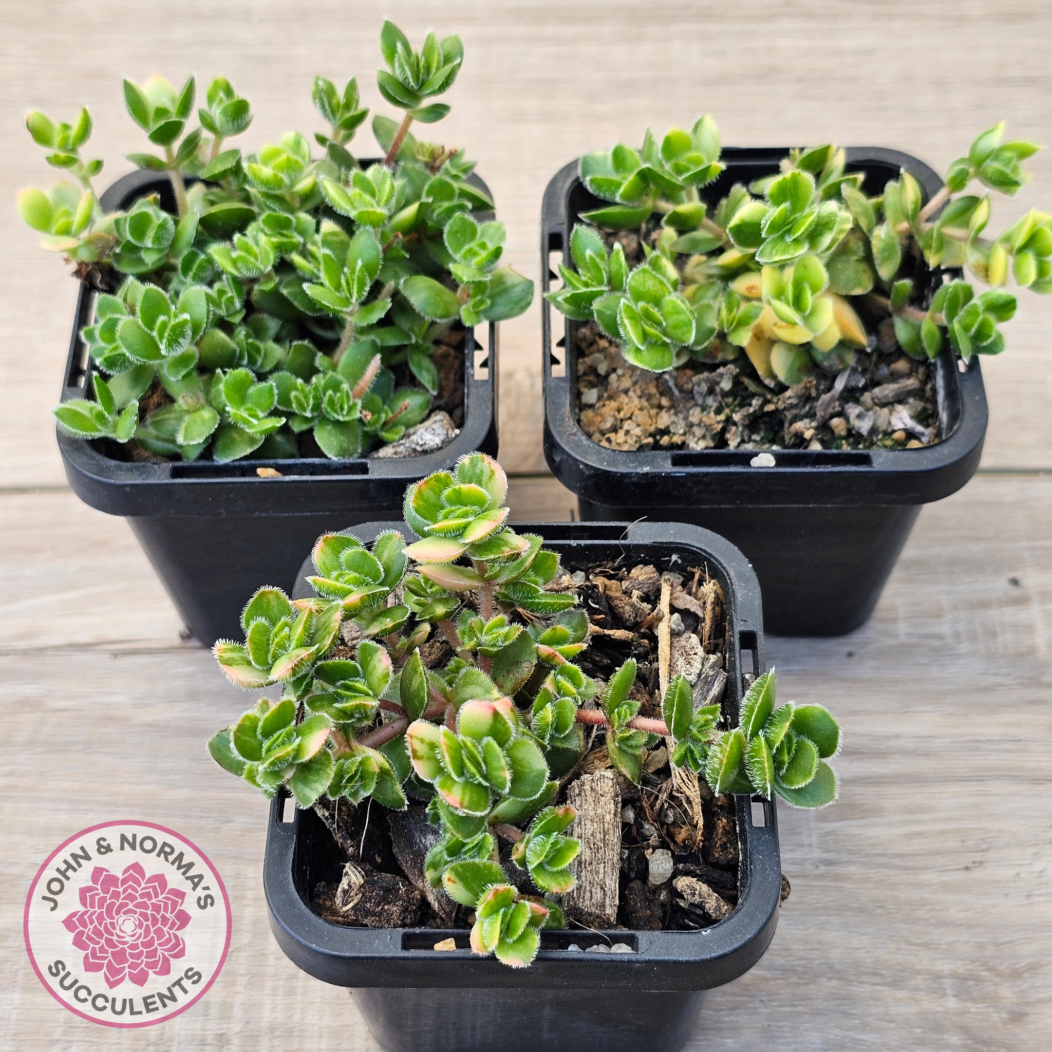Crassula lanuginosa var. pachystemon 'David' Variegated plants for sale shown in 70mm pot. You will receive same or similar plants as those shown in images. Colours will vary depending on time of year and growing conditions.