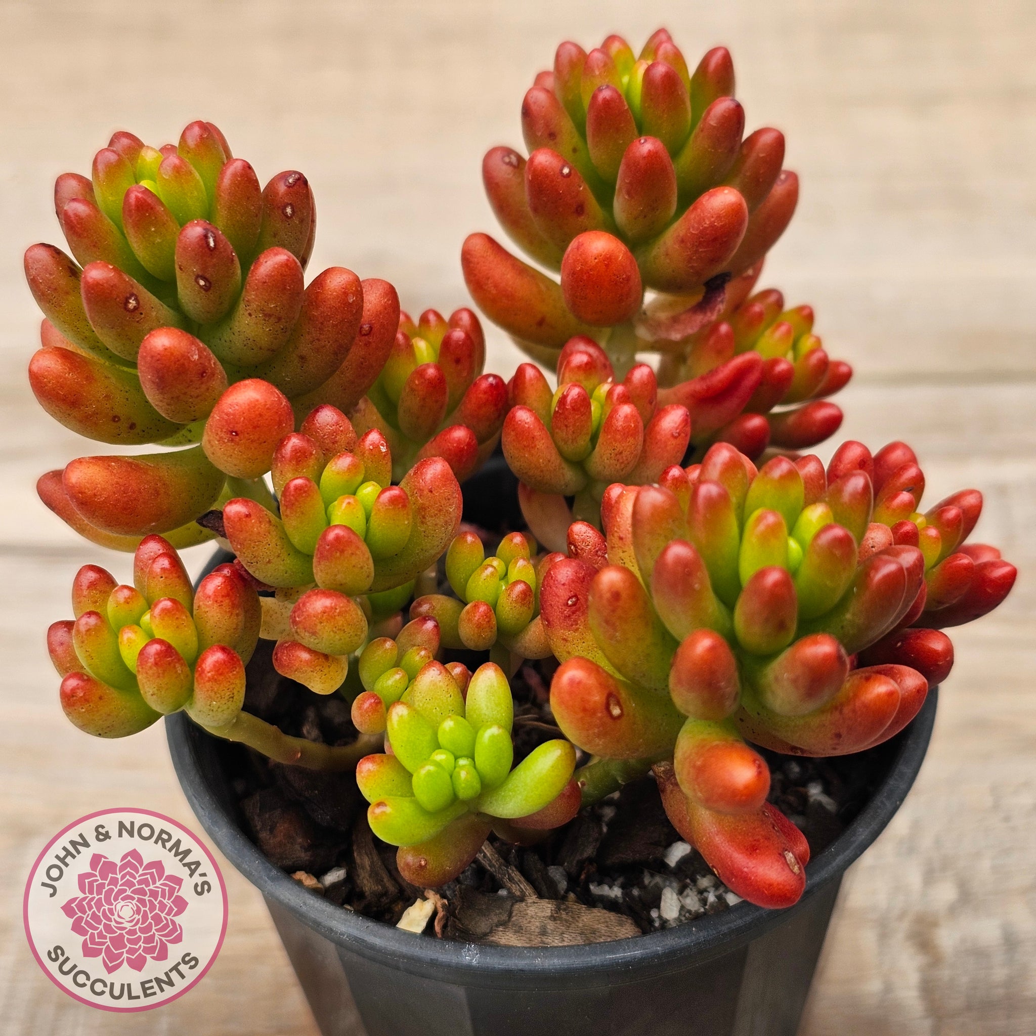 Overall, Sedum rubrotinctum aka 'Red Jelly Beans' is a charming and adaptable succulent that is sure to delight and impress with its unique appearance and ease of care.