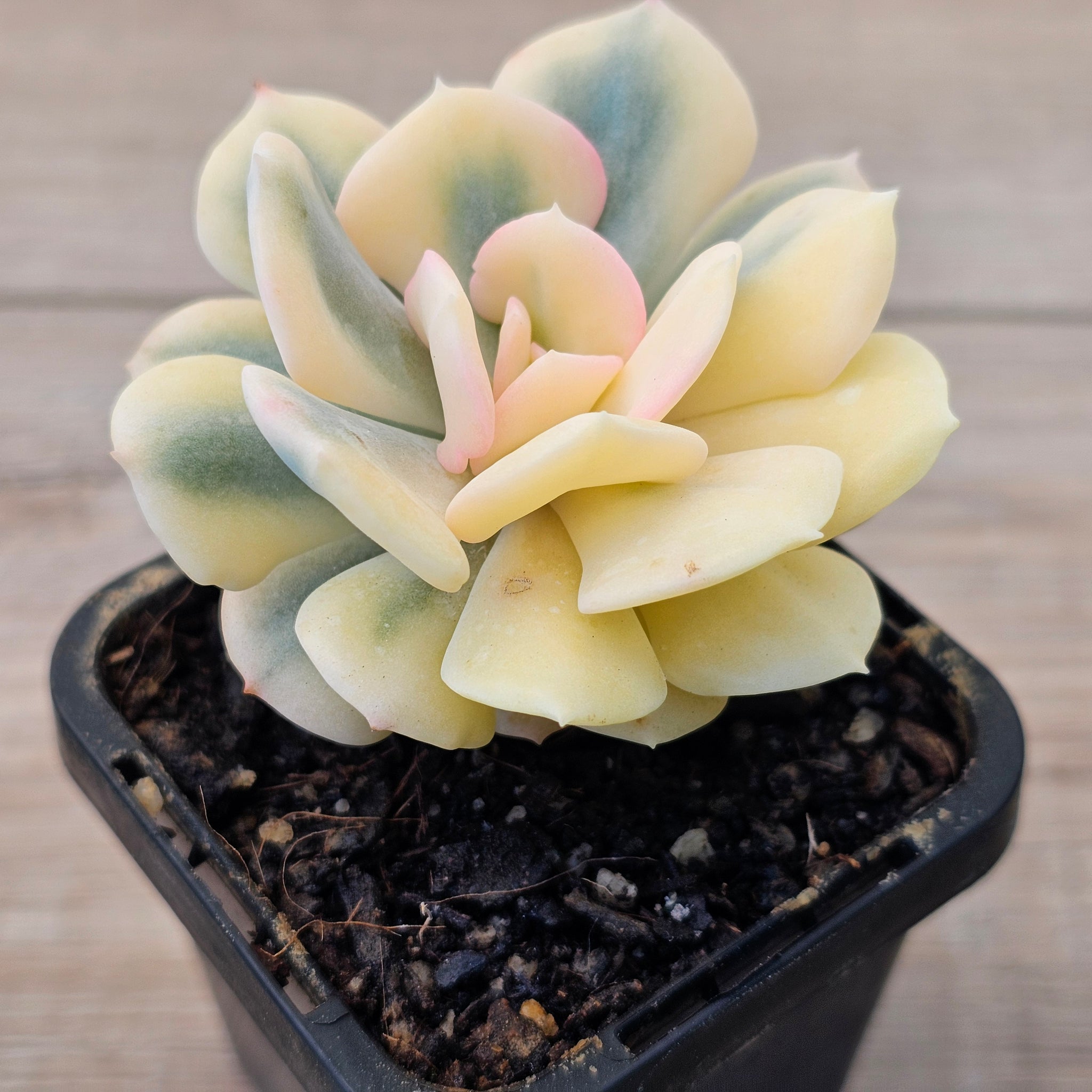 As a highly sought-after rarity, Echeveria 'Cubic Frost' Variegated presents itself as an exceptional addition to any succulent collection or garden, offering both novices and aficionados a living piece of art to admire. Its ease of care, coupled with its striking appearance, makes it a delightful choice for those looking to enhance their spaces with vibrant colours and unique textures. Whether displayed on its own or as part of a succulent arrangement, it promises to steal the spotlight, providing endless visual pleasure to its admirers.