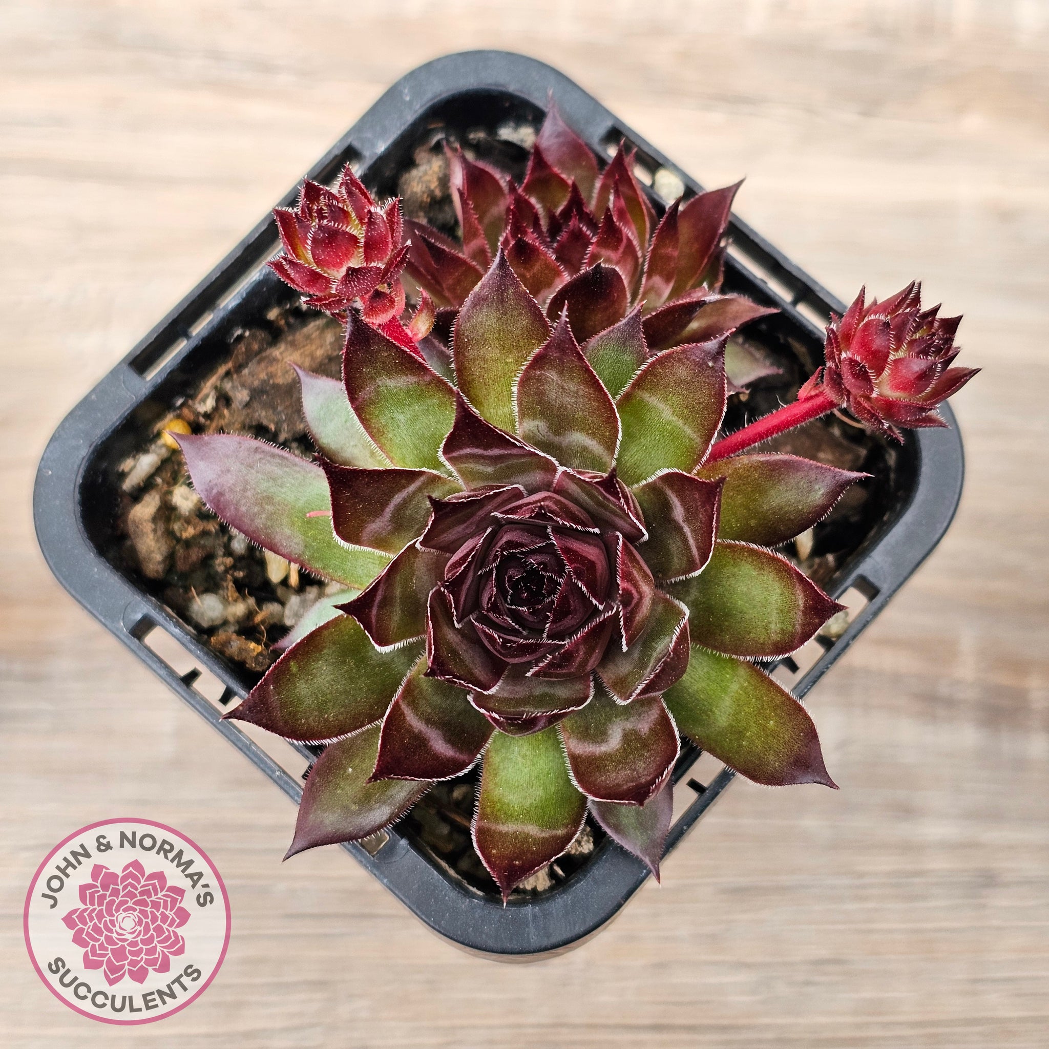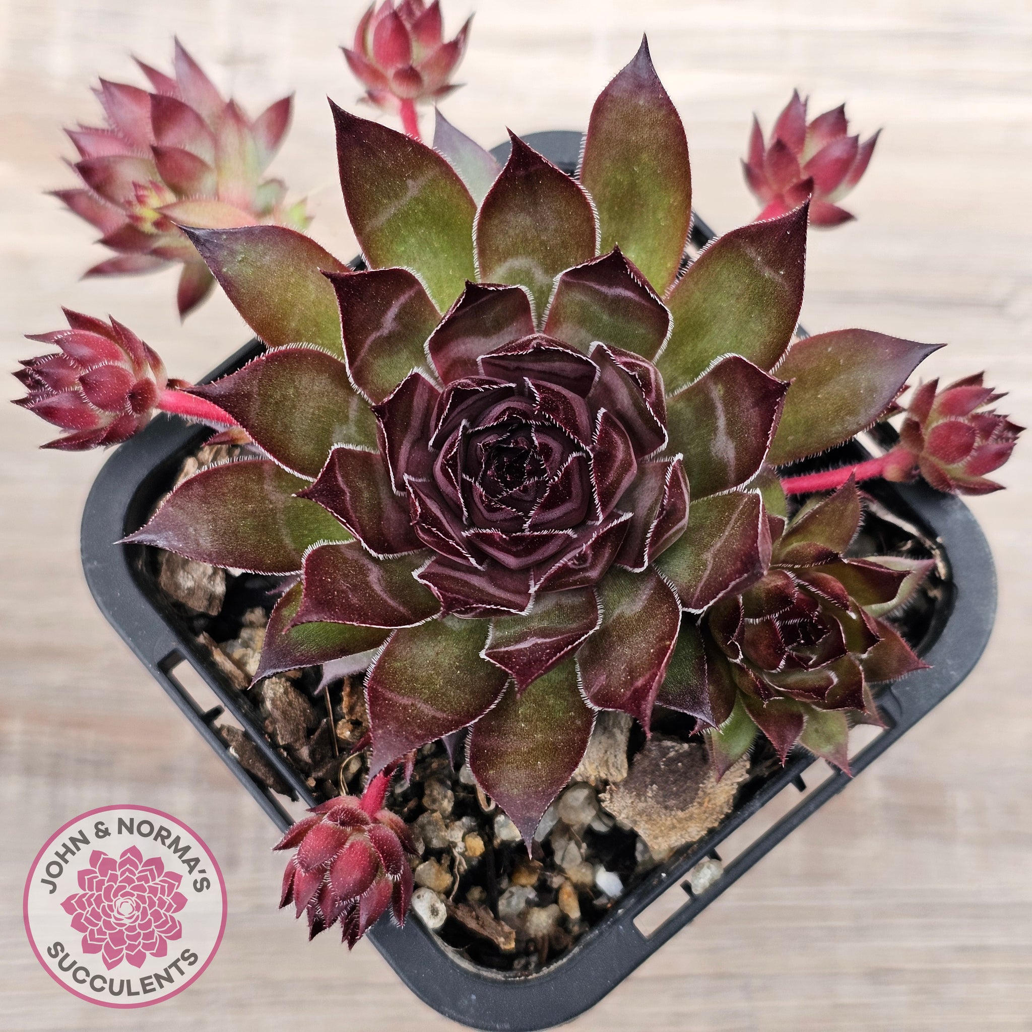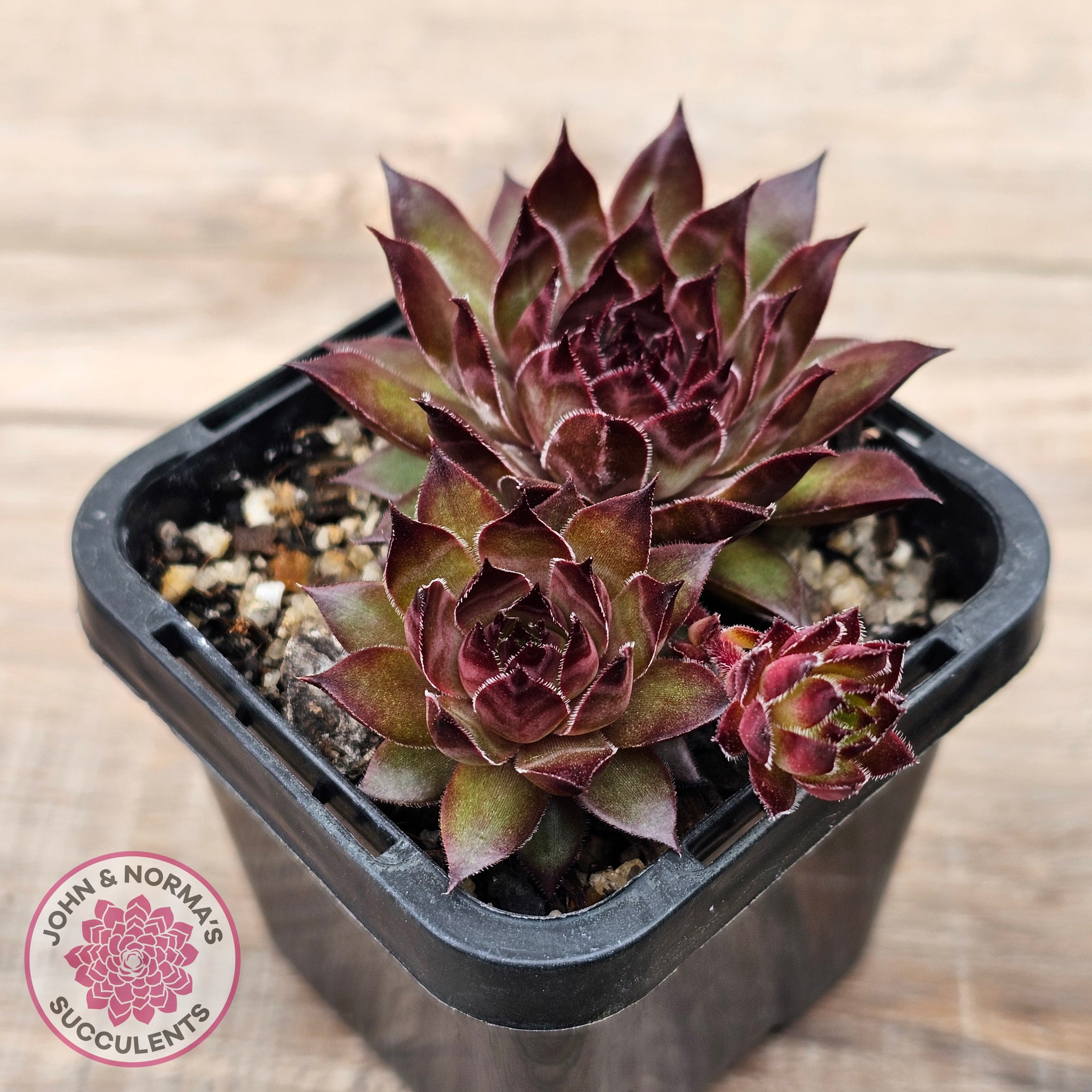 Sempervivum tectorum 'Bronco' plants for sale shown in 70mm pot. You will receive same or similar plants to those shown in images. Colours will vary depending on time of year and growing conditions.